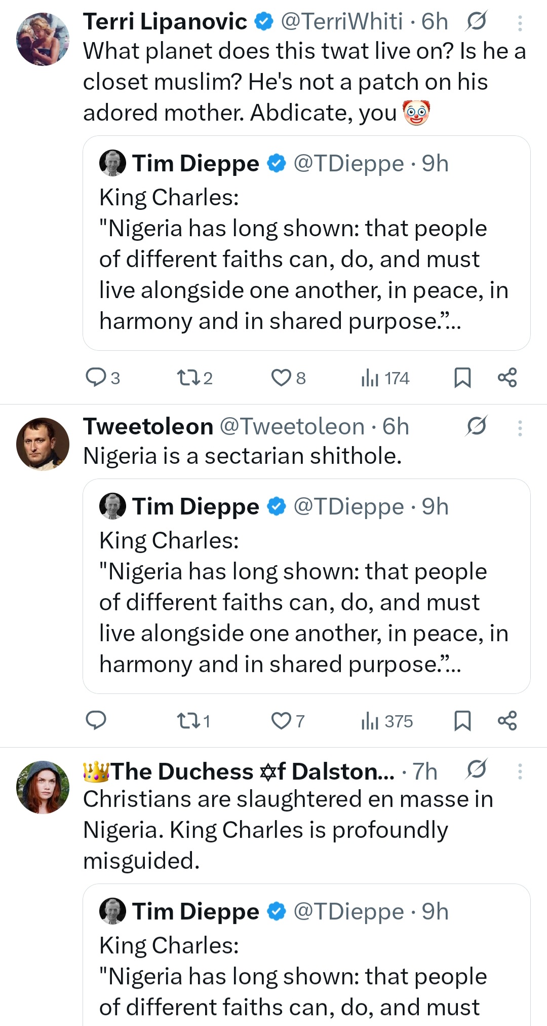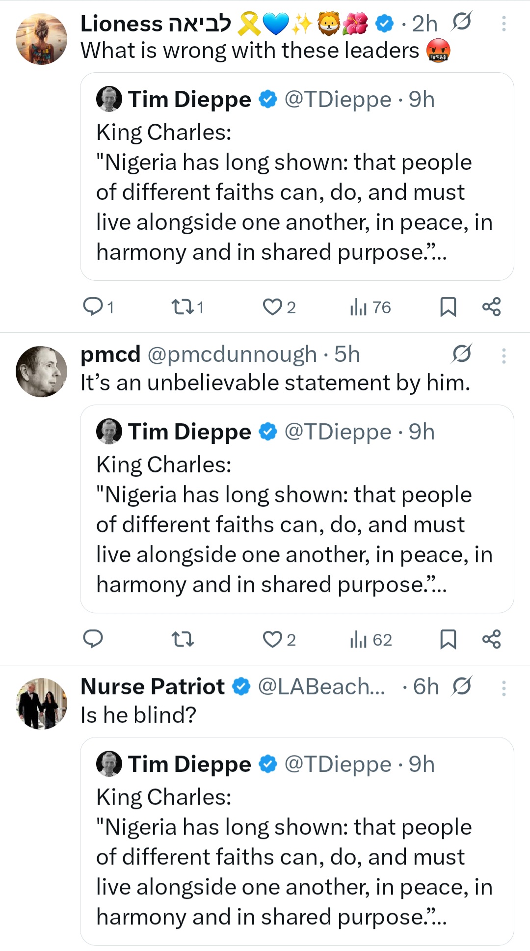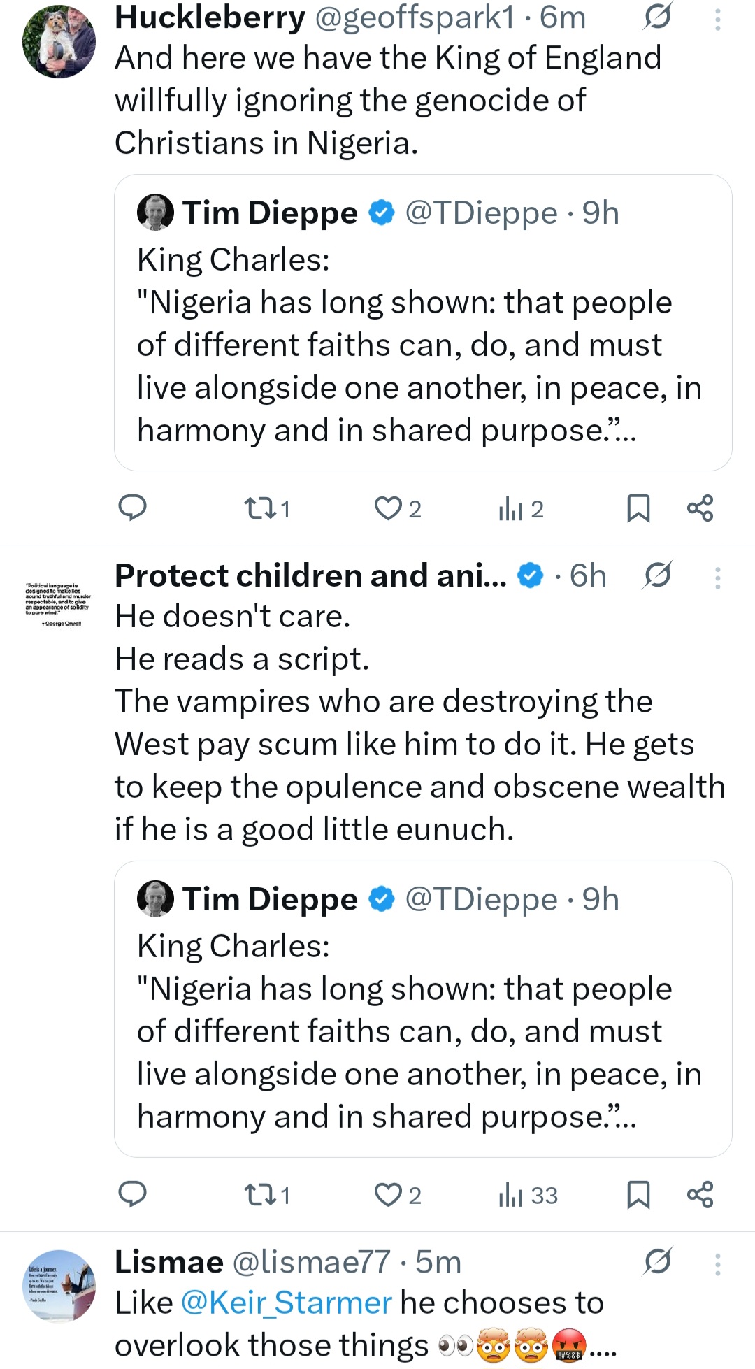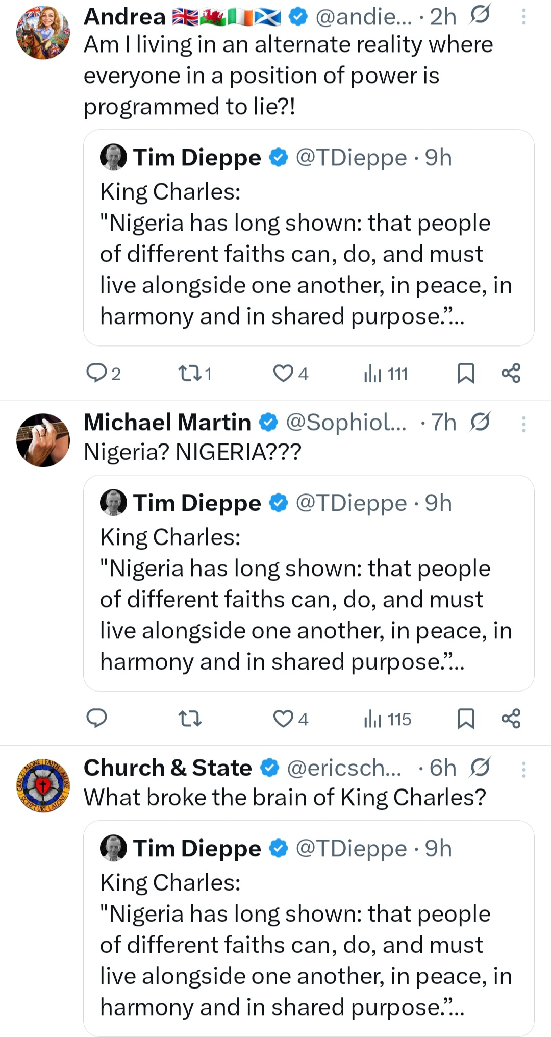 Brits call out King Charles for saying Nigerians are living in religious harmony amid "persecution of Christians" appeared first on
