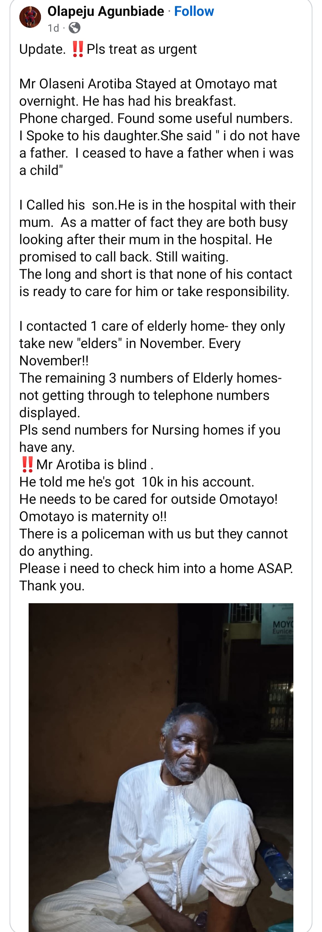 Good Samaritan shares response received from children of old and ailing man who has nowhere to go and no one to care for him appeared first on