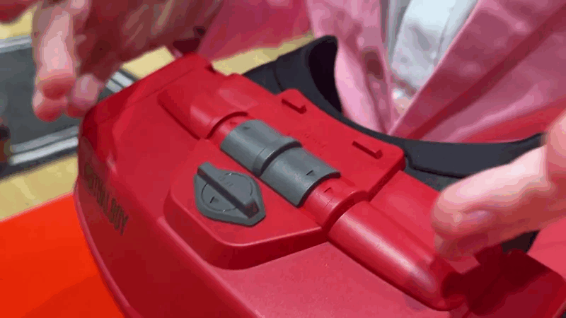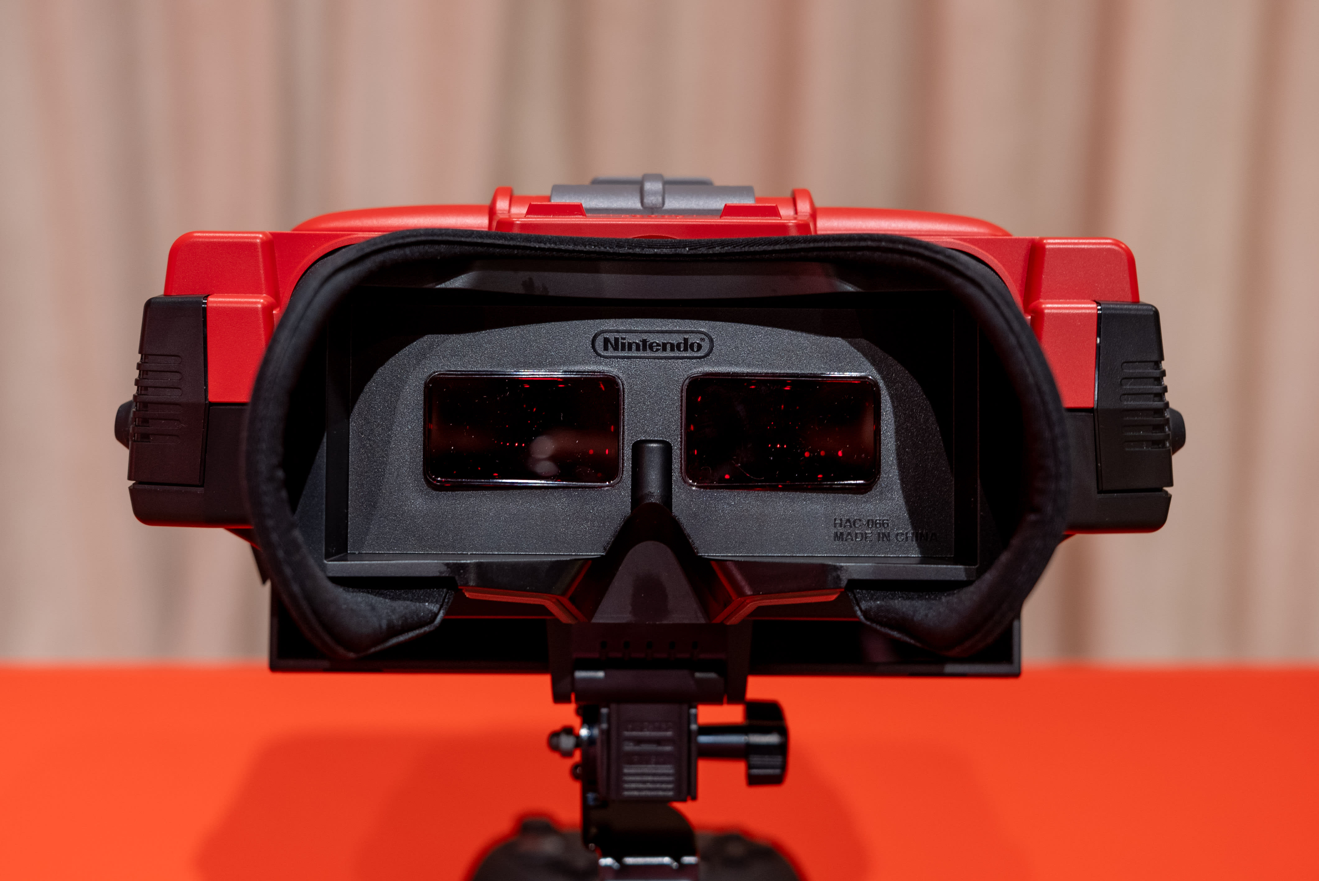 🎛️ The knobs, they do nothing! Since the new Virtual Boy is just a piece of plastic, the knobs on top of the console that used to adjust focus and IDP don’t actually work. It’s a bit of a letdown, but Nintendo tells me this was intentional, as the Virtual Boy’s optics are already locked in with the precise focal distance for anyone to just peer through the binocular eyepiece and start playing.