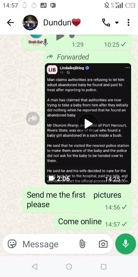 In a long conversation with LIB, the woman, named Naomi, narrated the complications before her pregnancy that led to her changing hospitals on the day she gave birth. At the new hospital (which will not be named for now since it has not been verified that the accusations against the hospital are true), Naomi said they decided to carry out surgery, which she consented to. As an orphan without any close living family member, she said her landlady was the one with her in the hospital. After giving birth via CS, she said they took the baby away and she did not get to see the baby or find out the gender. According to her, the first scan she went for showed she was expecting a baby girl but the later scan showed a boy, so she assumed she had a son. She claims that after surgery on May 9, 2025, her landlady told her the baby did not survive. When she confronted hospital staff, they told her the baby is alive and is being given medical care. She was then given a sedative that knocked her out. When she woke hours later, she says she was told her baby had did. She asked to hold the baby and, when they brought the baby, she noticed that the baby they claim did hours earlier was still warm and the child was sweating. When she called the attention of the doctors to this, she said she was told the baby's heart was no longer beating. Naomi said she held the baby all through the night and did not open the child's clothes to check the gender because she had no reason to doubt the gender the medics told her. By morning of May 10, 2025, she said the baby was still warm and did not stiffen like a de@d baby. She was sedated again and by the time she woke up, the baby had been taken from her. She added that the hospital offered to bury the baby for her for N60,000 and she paid. Because she was heartbroken and the de@th of her child had spiked her blood pressure, she said she did not attend the funeral. She said she accepted that her baby was dead and moved on with her life, only to see the story of the abandoned baby online. She told LIB: "The hair on her head that I was looking at all night, the red patch on her face, her nose is unmistakable. I was not mistaken, that is my baby. At first I thought I was running m@d, I needed evidence." She said she reached out to all her friends who had seen the baby and they all confirmed it's the same one recovered from the bush.